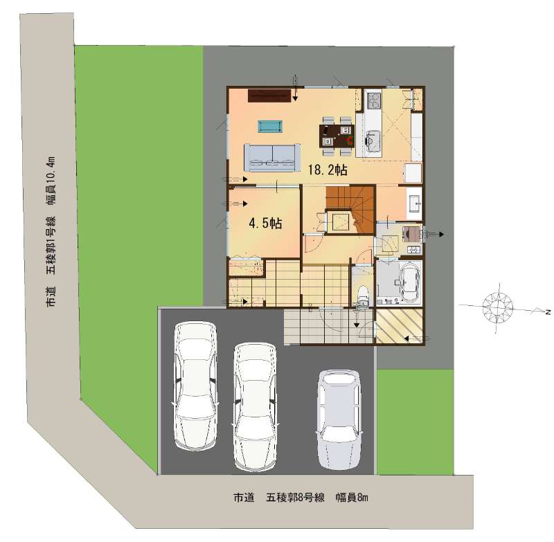 函館移住‼五稜郭公園そば、65坪の敷地に駐車スペース広々。2階建4LDK(五稜郭町)