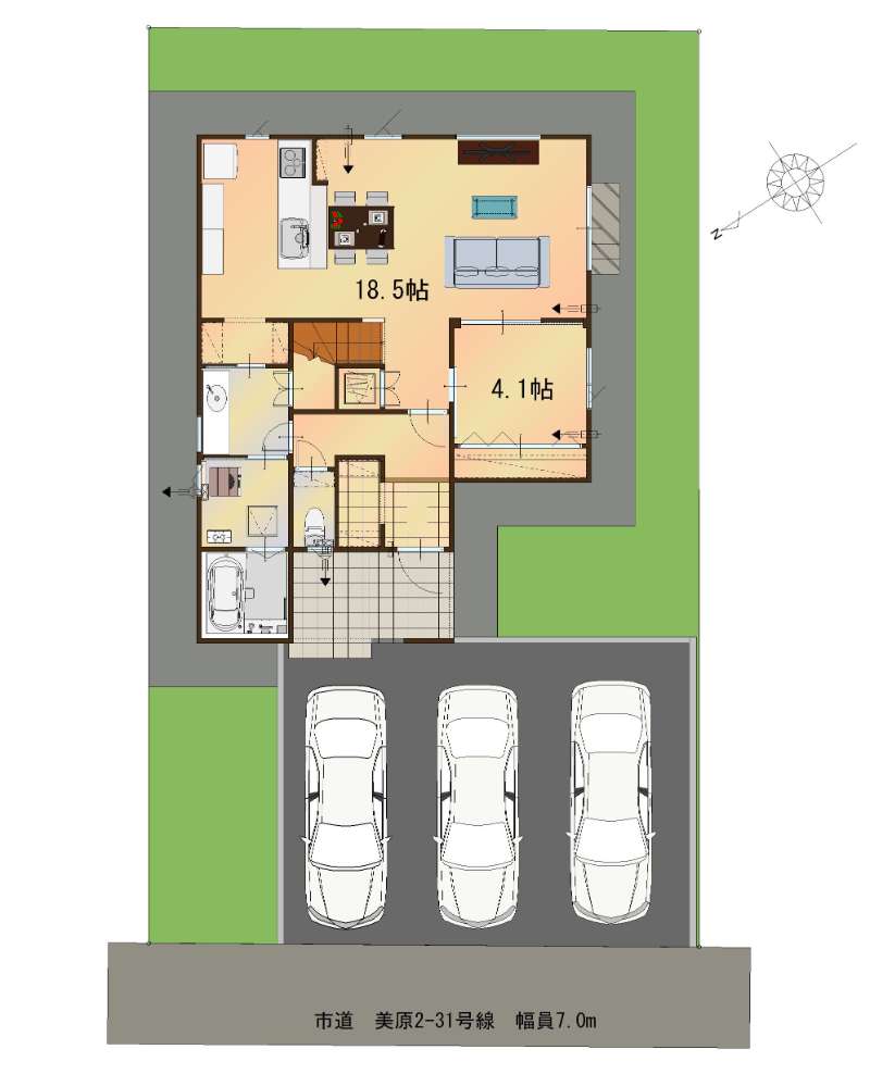 シューズクローク・パントリー・ドレスルームなど欲しいを詰め込んだ充実スタイル(美原C05)