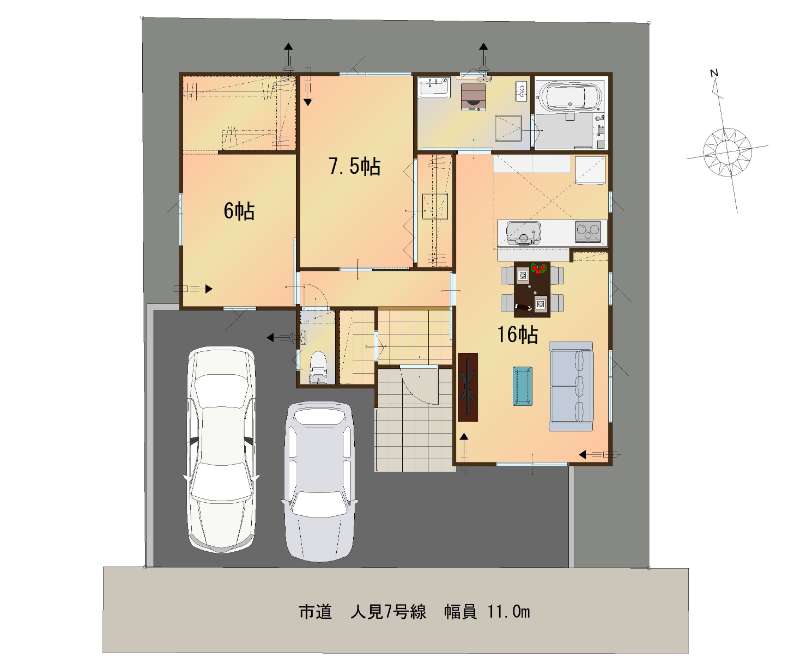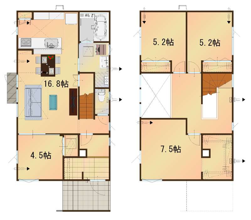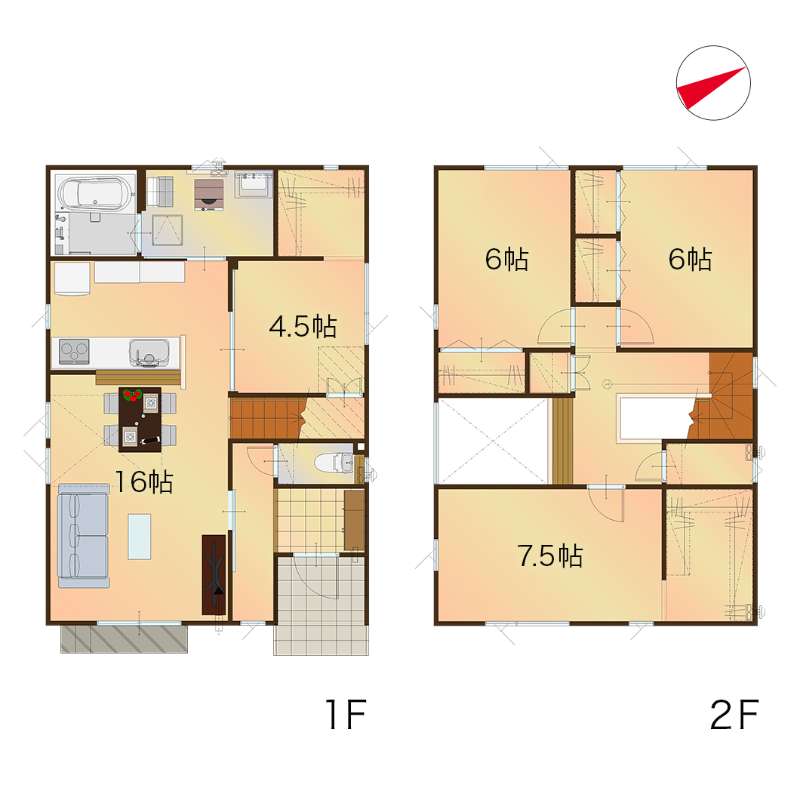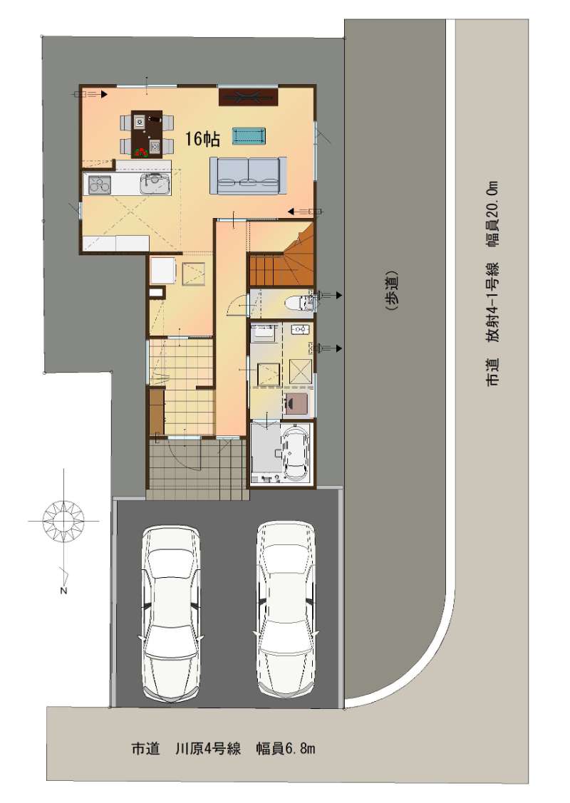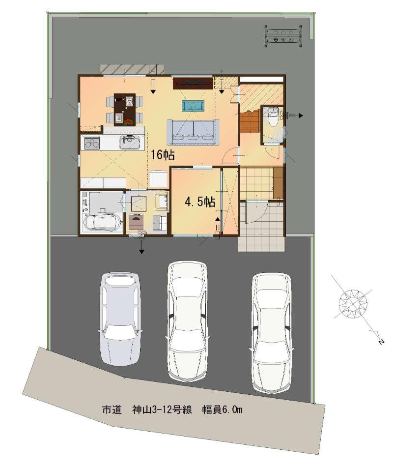 中央に吹抜けを配置し広がりのあるリビング空間!動きやすい動線が魅力の4LDK(神山C15)