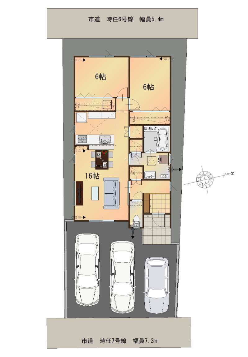 シンプルな生活導線が魅力的で暮らしやすい 2LDK平屋住宅。(時任町C08)