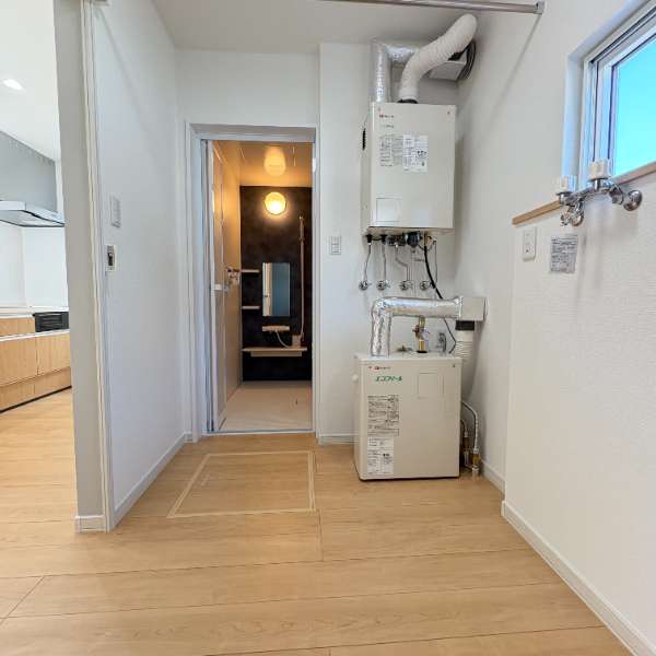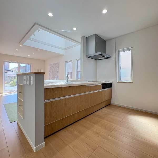 | 設備 | フローリング・吹き抜け・床下収納・シューズボックス・全居室収納あり・温水洗浄トイレ・シャンプードレッサー・追い焚き風呂・浴室1坪以上・IHクッキングヒーター・コンロ3口以上・システムキッチン・カウンターキッチン・浄水器・灯油暖房・24時間換気システム・灯油ボイラー・モニタ付インターホン | ||