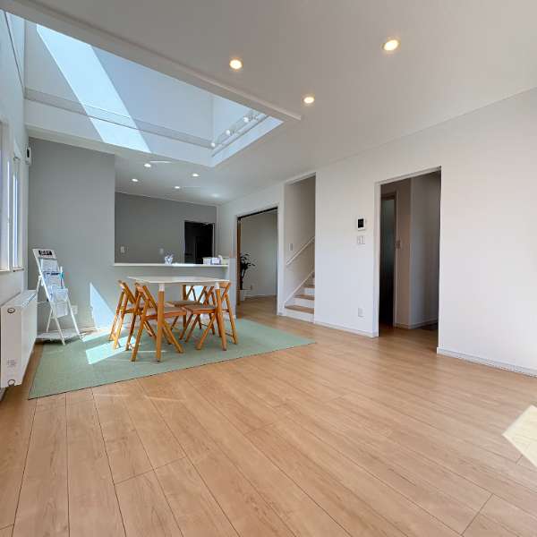 新築4LDK+車3台駐車可能の広々駐車場+2階吹抜けで開放的なおうち。
