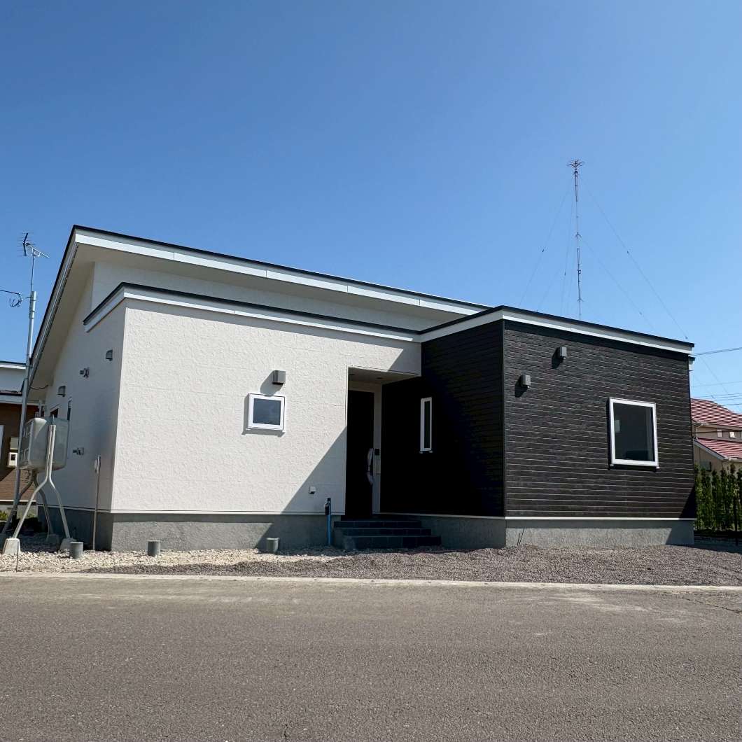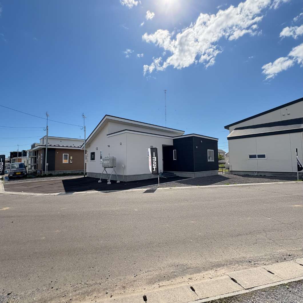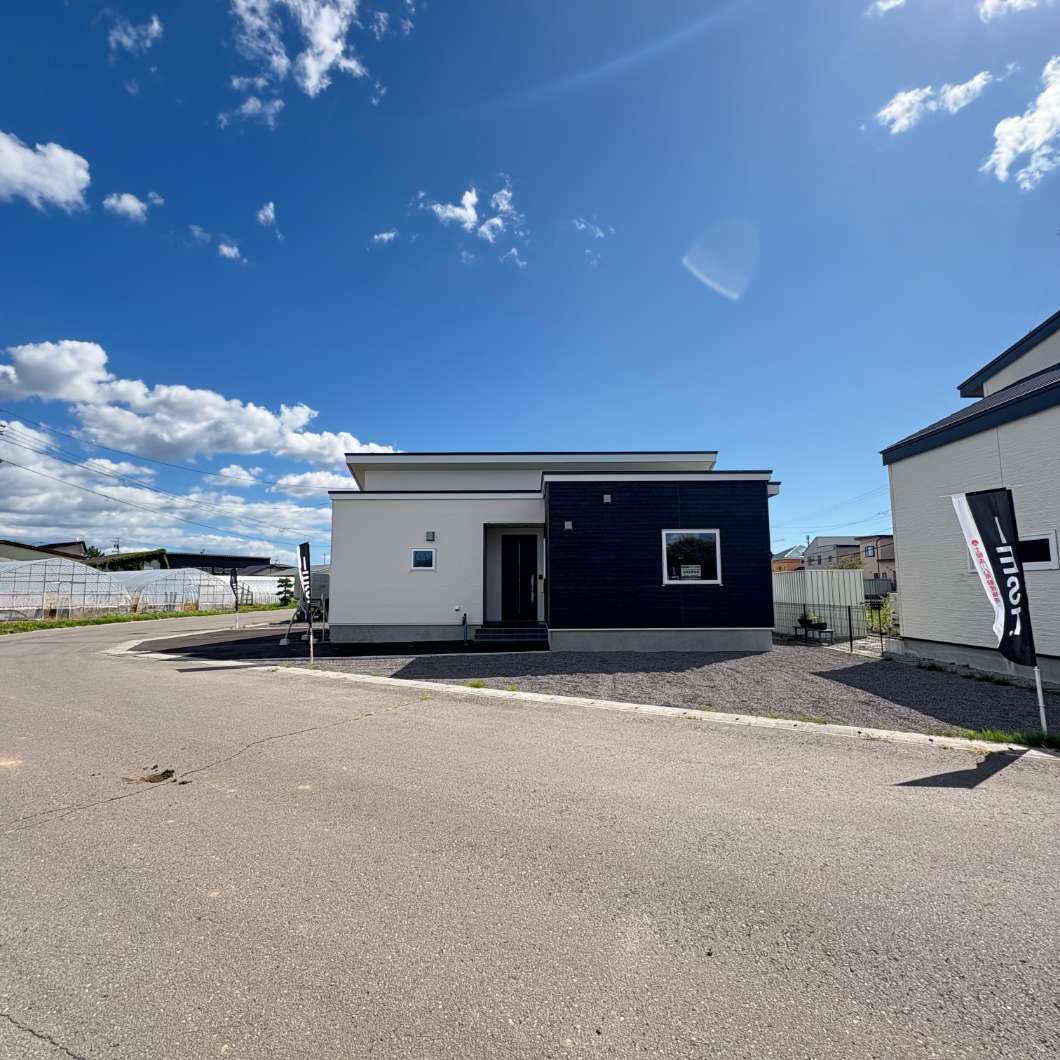 北斗市東前造成地、角地に新築平屋住宅を建築中。ワンフロアなので子育てに優しく、老後に向けた住み替えとしてもオススメしたい物件です。家族間のコミュニケーションも取りやすい間取り。