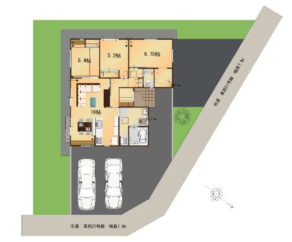 | 所在地 | 北斗市東前15-100 | 接道 | 北側公道幅約7.7m.間口19.5m接する |