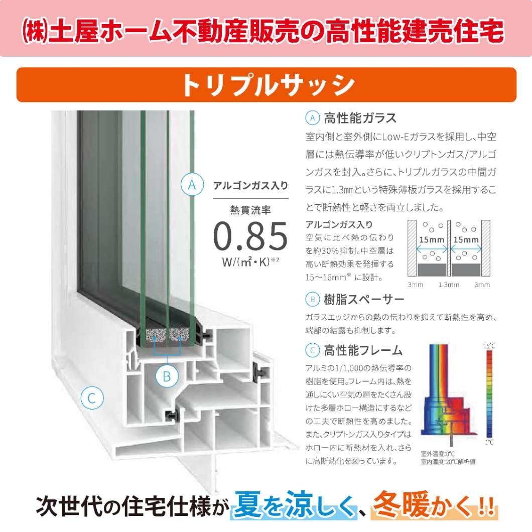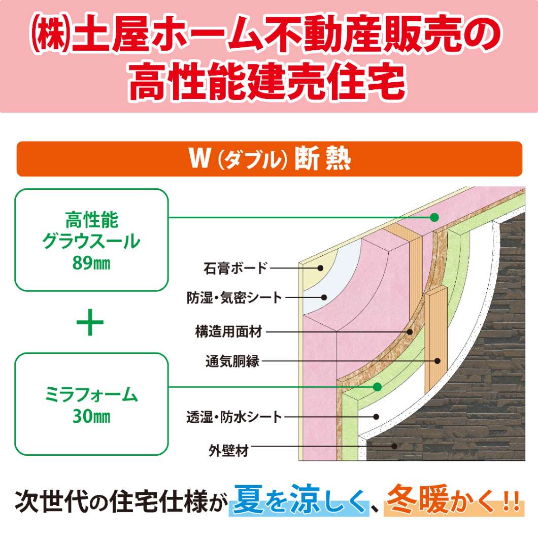 | 設備 | 床下収納・シューズボックス・シューズクローゼット・全居室収納あり・温水洗浄トイレ・シャンプードレッサー・追炊き風呂・浴室1坪以上・IHクッキングヒーター・ビルトイン食洗機・カップボード・ガス暖房・24時間換気システム・モニター付インターホン | ||